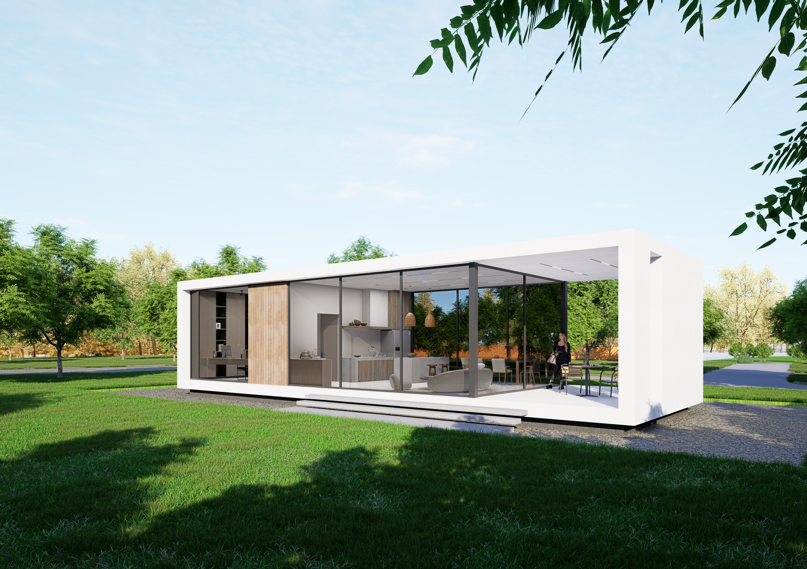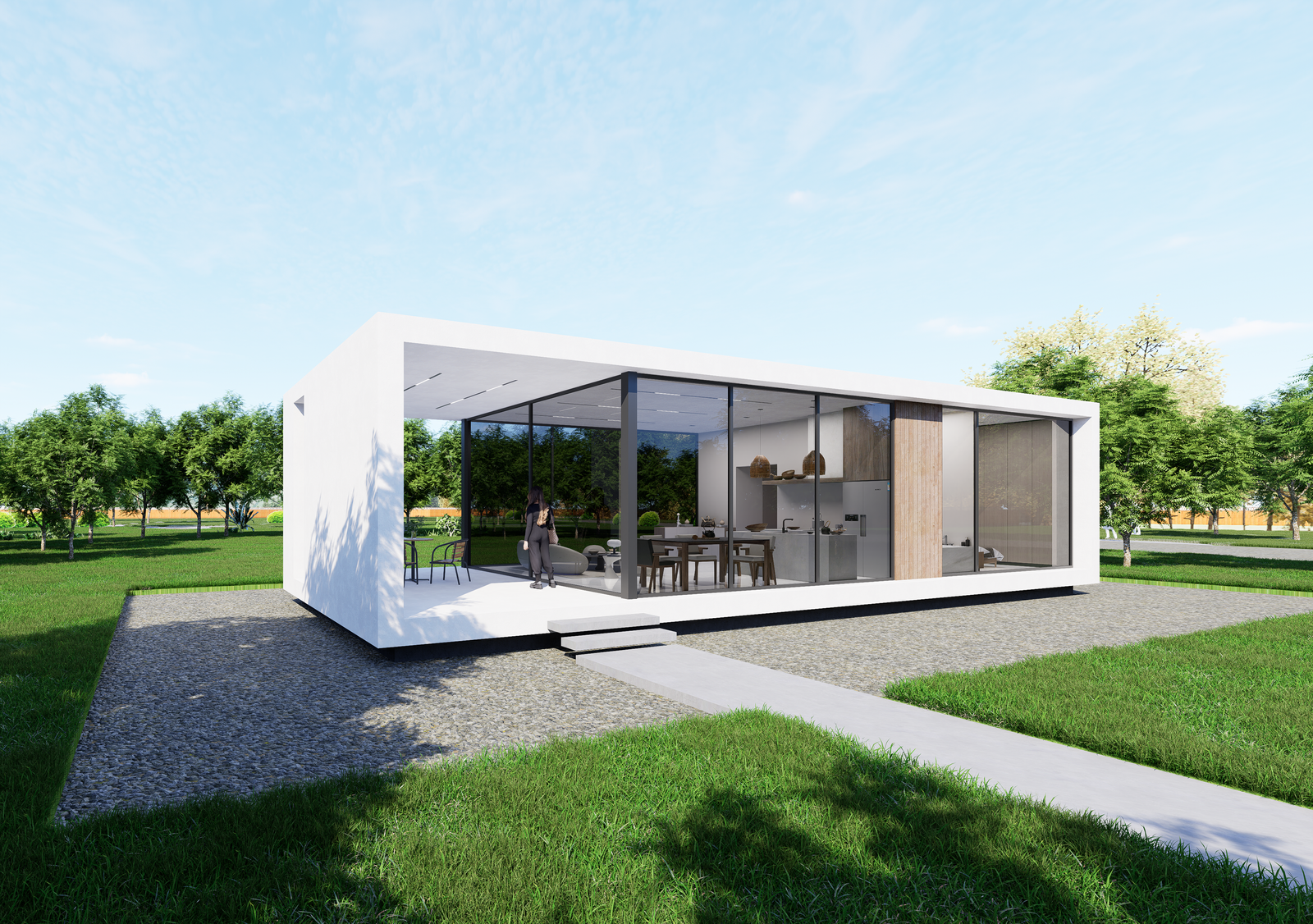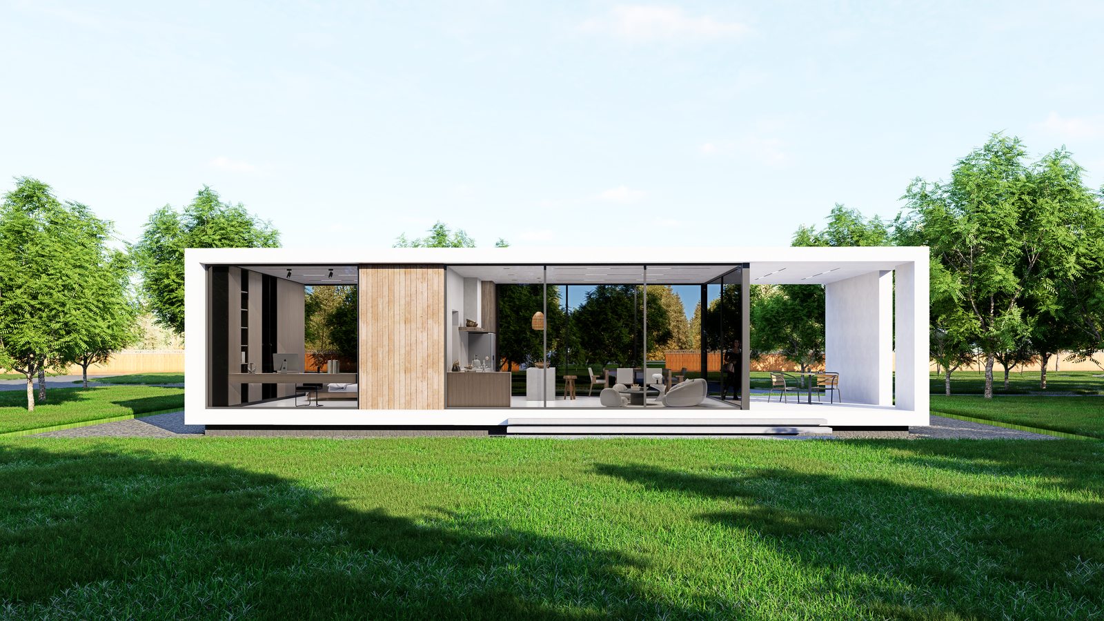 This elegant modular home embodies modern living with its spacious design and seamless indoor-outdoor connection. Perfect for families or individuals, it offers an open layout, abundant natural light, and a tranquil connection to nature.